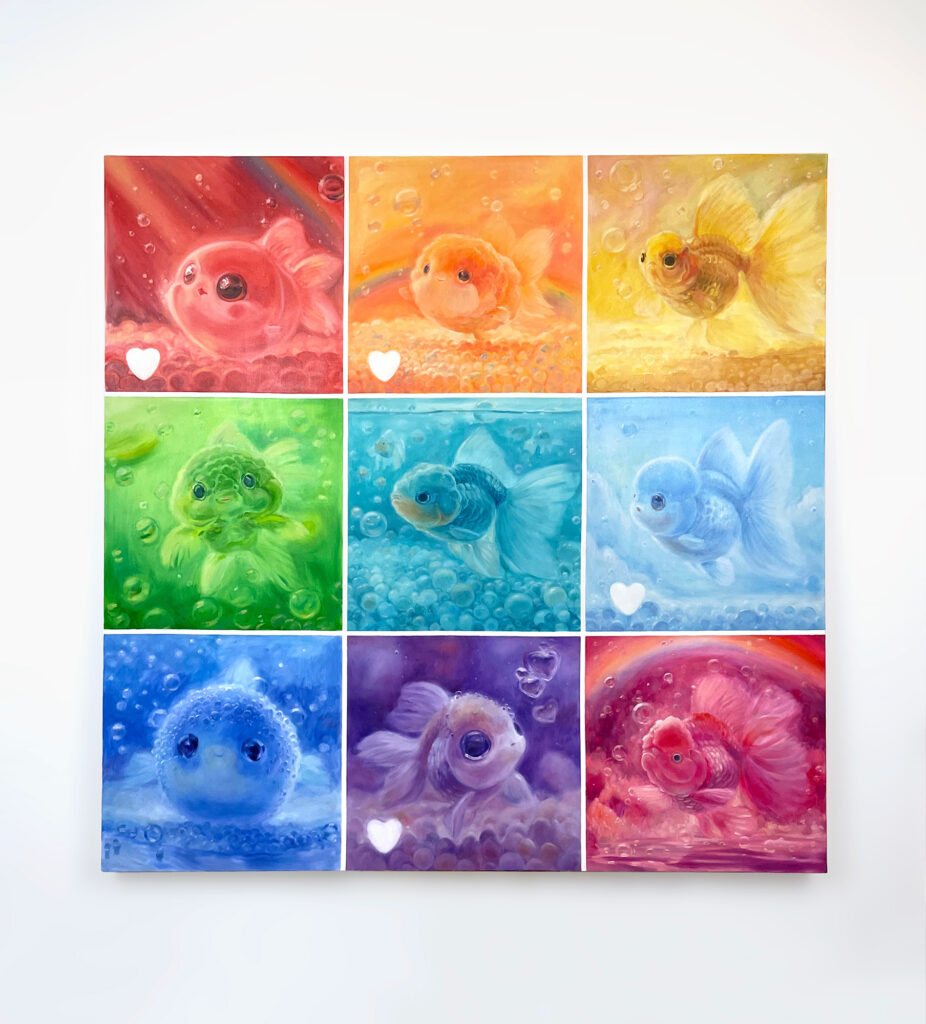 Rainbow Bubbles, 2024, oil on canvas, 150 x 150